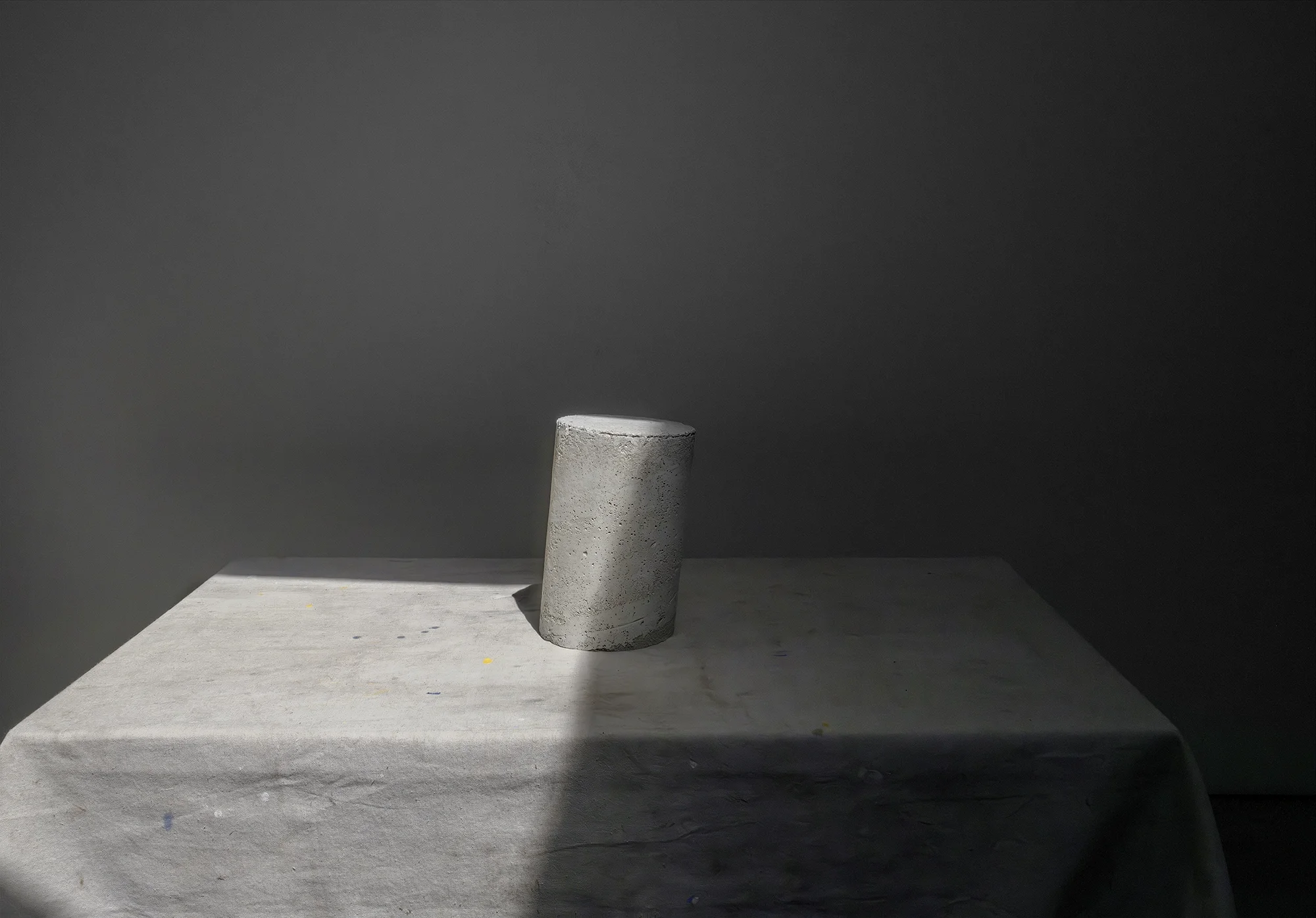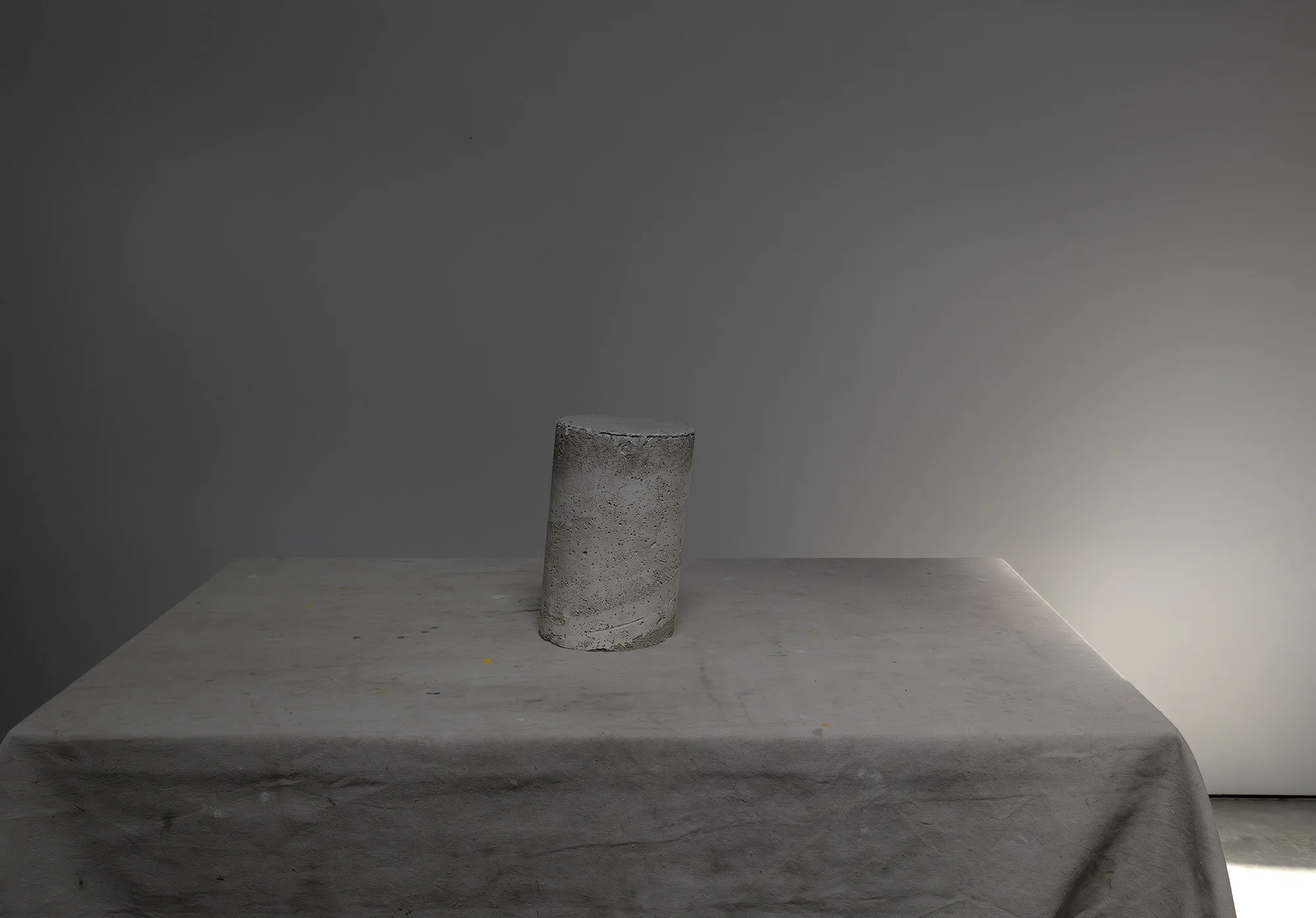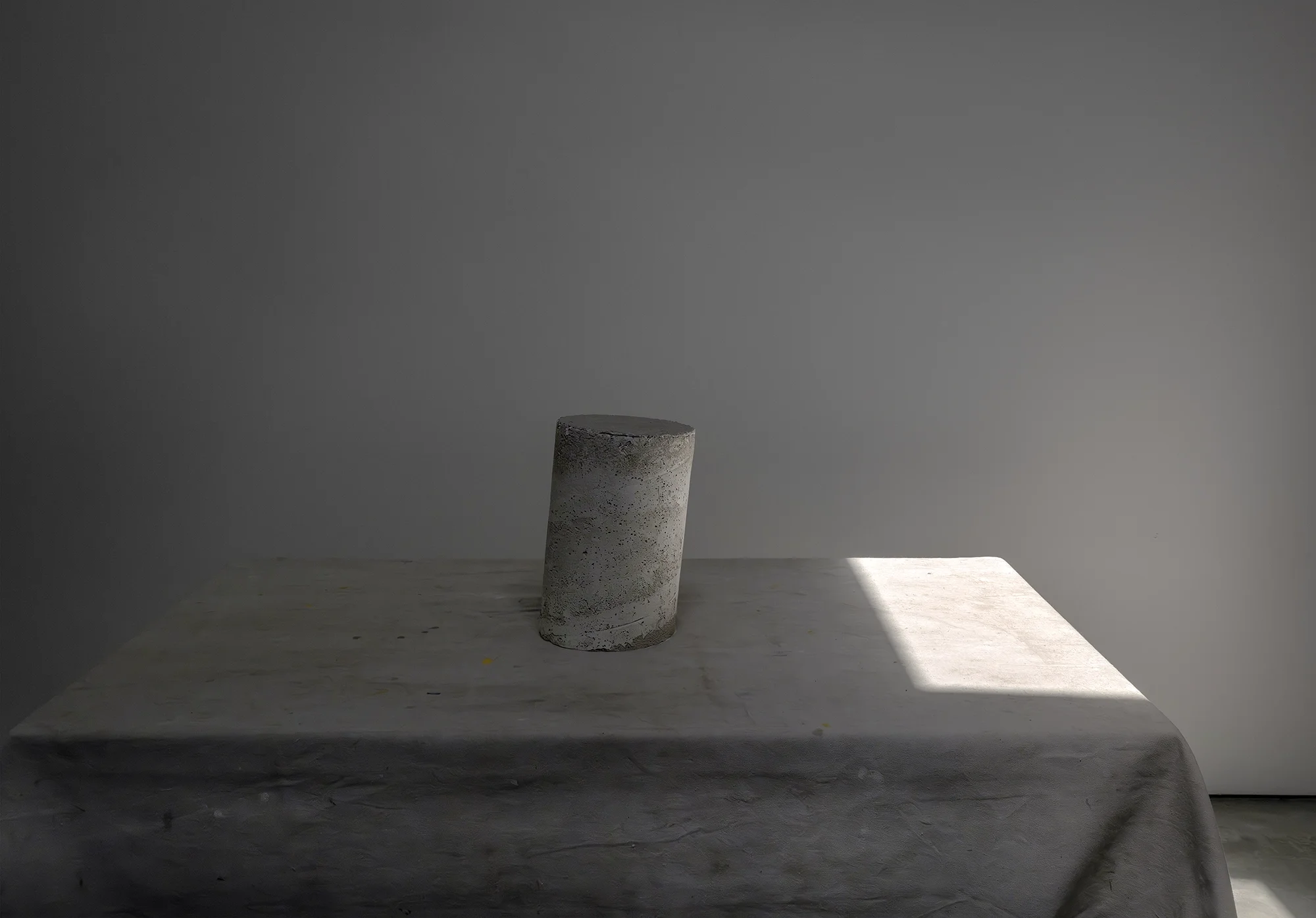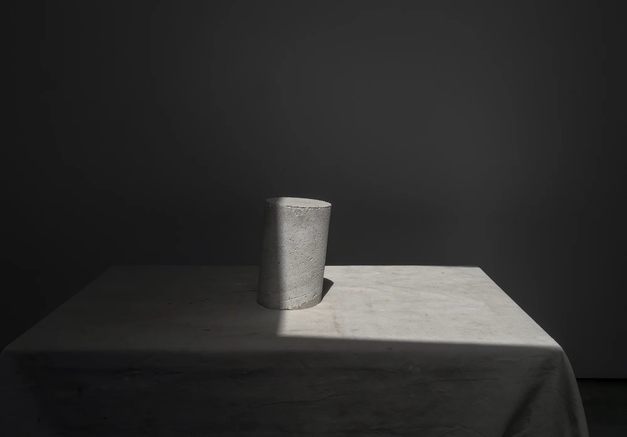 A friend died. I had been wanting to make still lifes for some time. Last summer, I set up a table draped with a canvas cloth and began selecting objects from around the studio. I arranged many variations—single objects, pairs, and small groupings—but nothing felt compelling. I wasn’t working from a specific concept; I simply wanted to enjoy the photographic process. Eventually, I placed a concrete cylinder—a simple, elementary form—at the center of the table. When I began photographing it, I struggled and grew frustrated by technical issues. It felt disproportionate. This wasn’t supposed to be difficult. It was just a still life.
